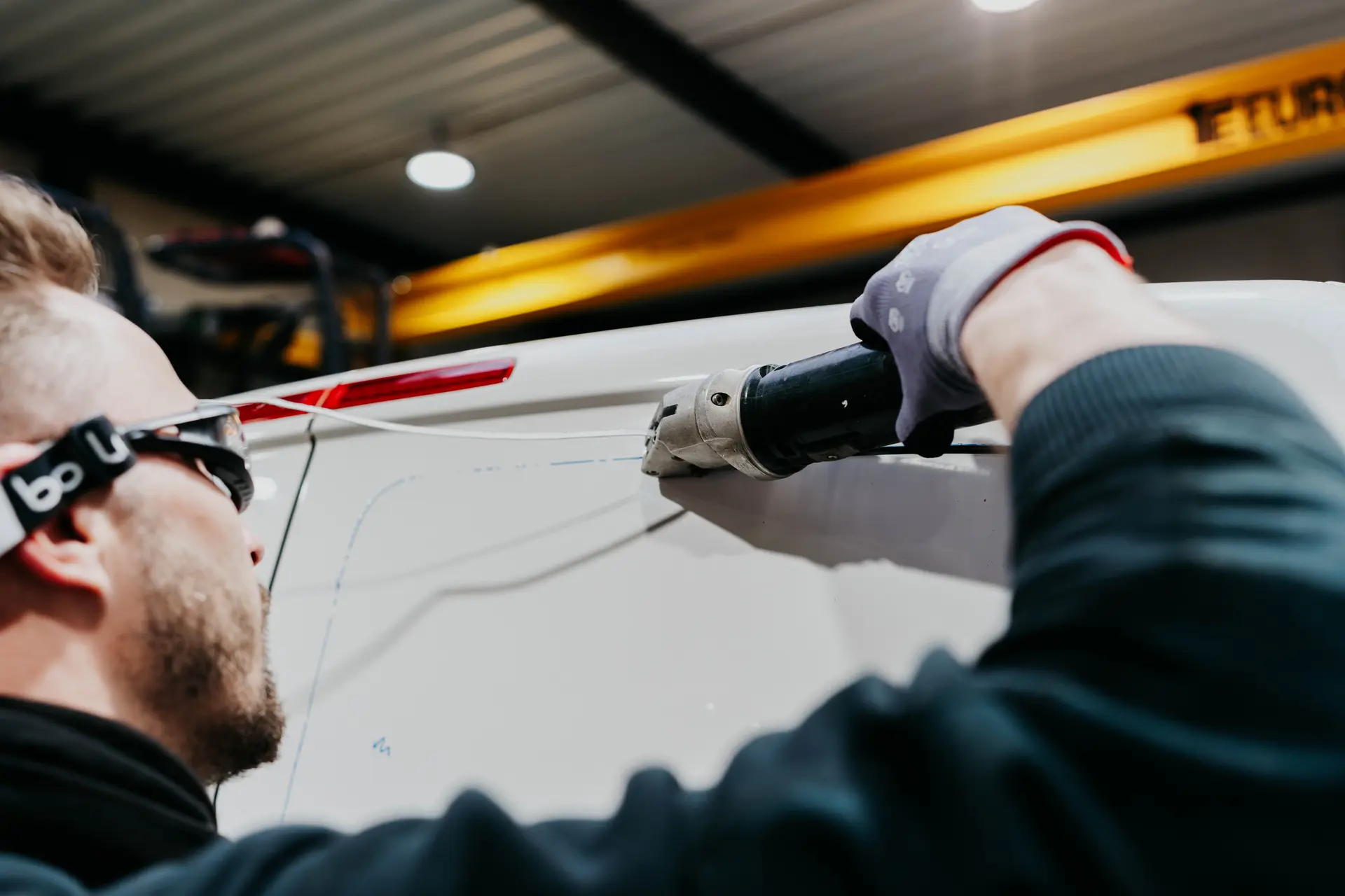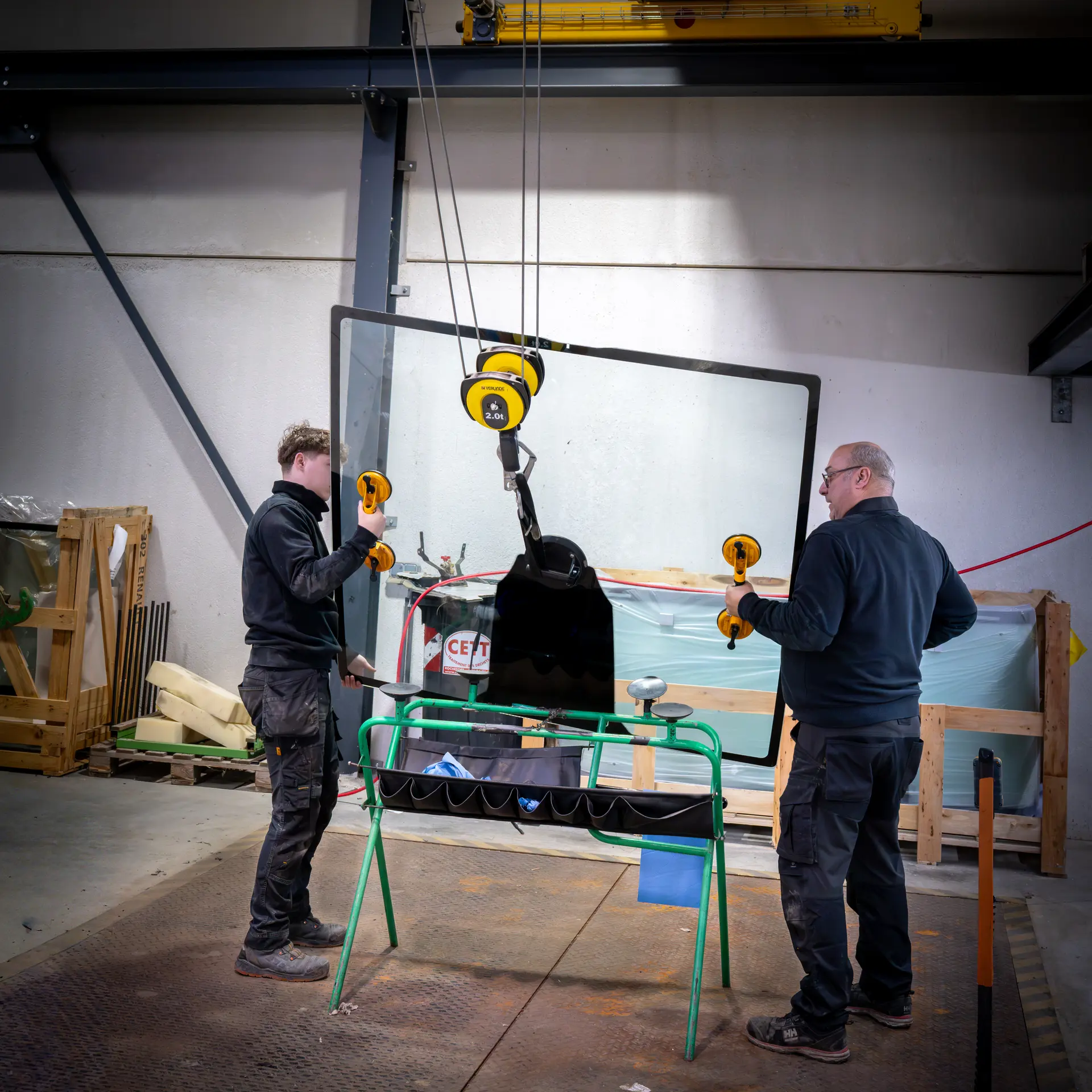 Découpe carrosserie selon gabarits constructeurs. Vitrages fixes, coulissants ou portes battantes. Service disponible en Wallonie.
